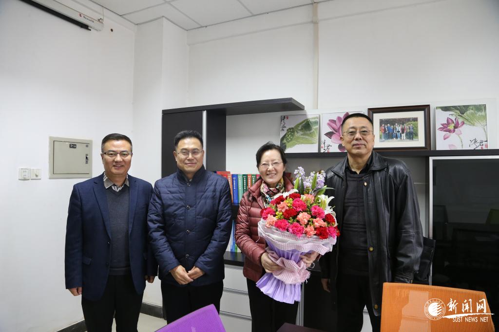 馬建中代表學(xué)校向張美云教授送上鮮花并致以節(jié)日的問(wèn)候。他說(shuō),張美云教授在陜西科技大學(xué)學(xué)習(xí)、工作了整整40年,為學(xué)校的發(fā)展作出了突出的貢獻(xiàn)。特別是2017年,張美云教授主持的創(chuàng)新性研究成果“高性能纖維紙基功能材料制備共性關(guān)鍵技術(shù)及應(yīng)用”榮獲2017年國(guó)家科學(xué)技術(shù)進(jìn)步二等獎(jiǎng),獲得國(guó)家“萬(wàn)人計(jì)劃”教學(xué)名師,領(lǐng)銜的高性能纖維紙基功能材料教師團(tuán)隊(duì)成功入選首批“全國(guó)高校黃大年式教師團(tuán)隊(duì)”,作為負(fù)責(zé)人成功獲批國(guó)家重大研發(fā)計(jì)劃項(xiàng)目,一舉取得了四項(xiàng)殊榮,為學(xué)校爭(zhēng)取了重大榮譽(yù)。張美云教授長(zhǎng)期堅(jiān)守在教學(xué)科研第一線(xiàn),愛(ài)崗敬業(yè),艱苦奮斗,是“三創(chuàng)兩遷”大學(xué)精神的踐行者,是全校教職員工學(xué)習(xí)的楷模。