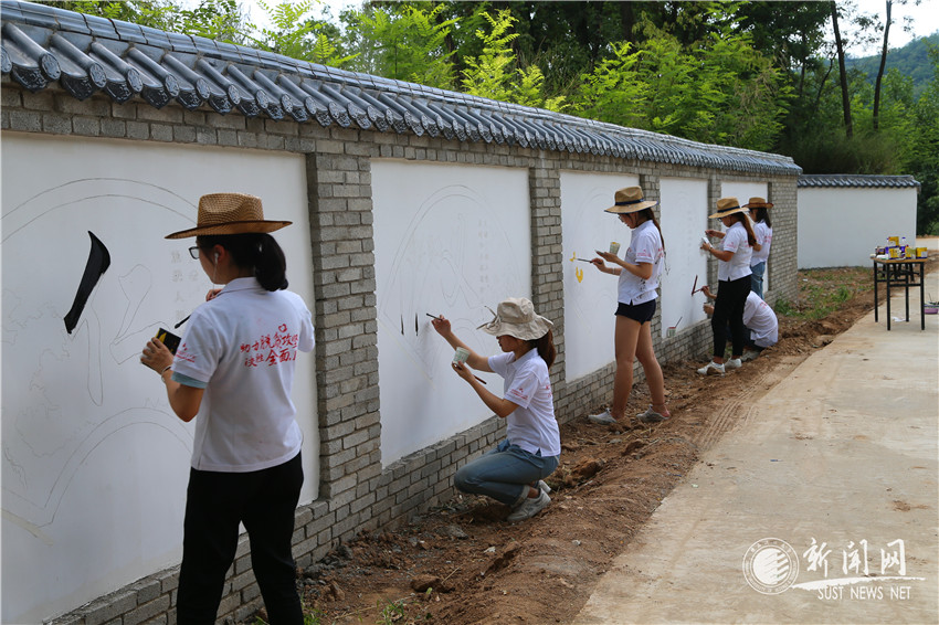 設(shè)計與藝術(shù)學(xué)院暑期社會實踐團(tuán)正在為王石凹村繪制政策形象墻