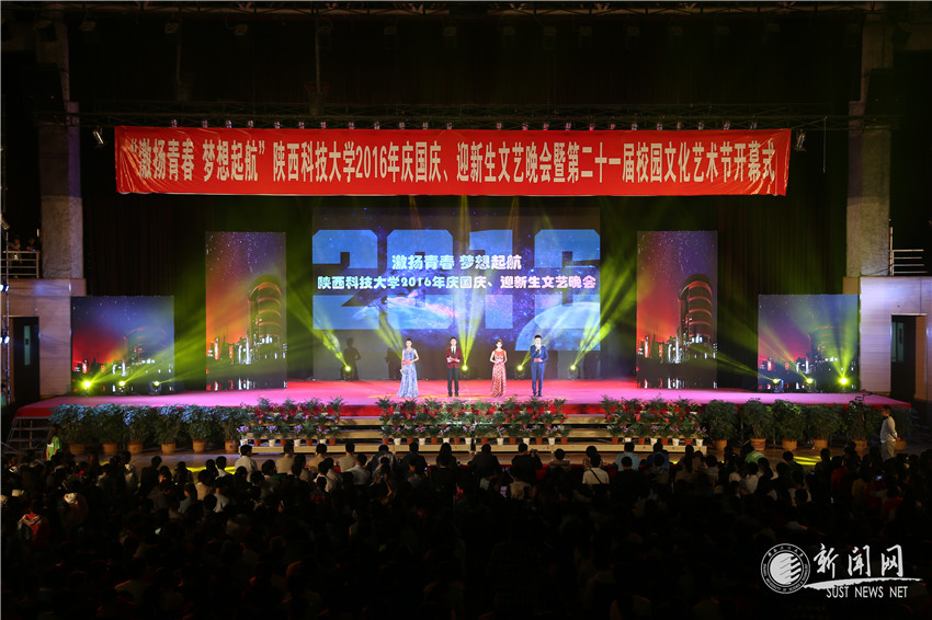 9月29日晚,由校團(tuán)委、學(xué)工部、體育部聯(lián)合主辦,各學(xué)院團(tuán)委、校學(xué)生會(huì)承辦的“激揚(yáng)青春 夢(mèng)想起航”陜西科技大學(xué)2016年慶國慶、迎新生文藝晚會(huì)暨第二十一屆校園文化藝術(shù)節(jié)開幕式在我校文體館舉行。校長(zhǎng)姚書志、校黨委副書記溫鋒、總會(huì)計(jì)師徐曉峰、校各部門負(fù)責(zé)人、各學(xué)院學(xué)生工作和團(tuán)工作負(fù)責(zé)人,新生輔導(dǎo)員和2016級(jí)新生共同觀看了晚會(huì)。