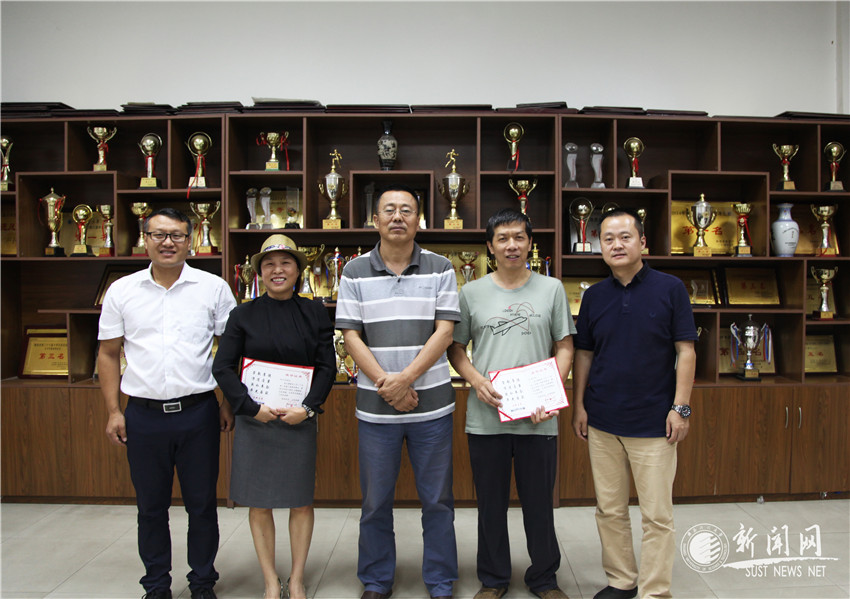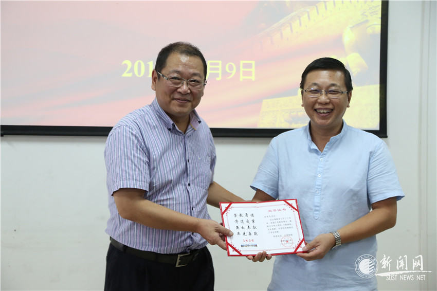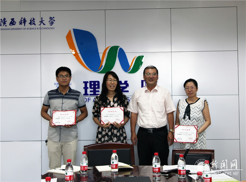 校黨委書記潘中偉(右一)為材料學(xué)院獲獎(jiǎng)教師頒發(fā)榮譽(yù)證書