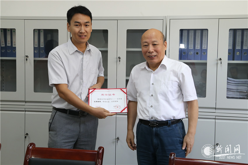 副校長王學(xué)川(右一)為化工學(xué)院獲獎(jiǎng)教師頒發(fā)榮譽(yù)證書
