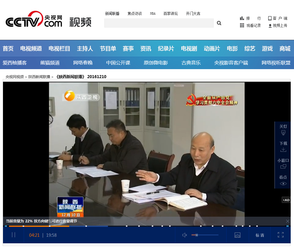 《陜西新聞聯(lián)播》在12月10日以《陜西高校:學(xué)習(xí)貫徹六中全會(huì)精神 加強(qiáng)和改進(jìn)高校黨建工作》為題報(bào)道了我校學(xué)習(xí)貫徹十八屆六中全會(huì)精神,落實(shí)陜西省委追趕超越相關(guān)精神的情況。