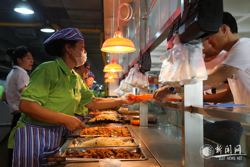熱鬧的餐廳中,科大的“新鮮血液”們已經(jīng)到了他們的午餐時(shí)間,與家人一起在科大的餐廳中吃上來(lái)科大的第一頓飯,幸福的笑容寫(xiě)在他們臉上。為保證新生和家長(zhǎng)們順利、開(kāi)心的用餐,飲食中心在三天前就開(kāi)始了一系列準(zhǔn)備,而今天也是從早上五點(diǎn)就已經(jīng)開(kāi)始了加工工作。并且今天開(kāi)放了沁園一、二、清真、接待四個(gè)餐廳,并配備有兩名專職監(jiān)督員,監(jiān)控飲食安全與衛(wèi)生,為新生的飲食健康保駕護(hù)航。