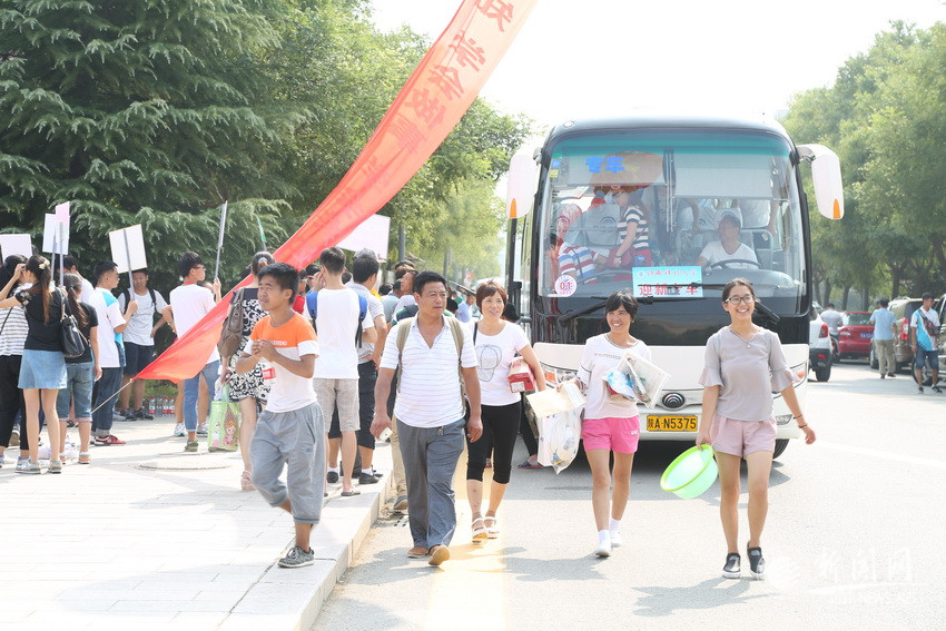 在迎新大道上,迎新志愿者們?cè)趽頂D的人潮中不間斷的忙碌著,在學(xué)校的主要交通干線上,協(xié)管交通的保衛(wèi)處工作人員與志愿者也頂著炎炎烈日疏導(dǎo)交通秩序,為新生及家長(zhǎng)提供舒暢的交通環(huán)境,用自己辛勤的汗水保證了迎新工作的交通順利。