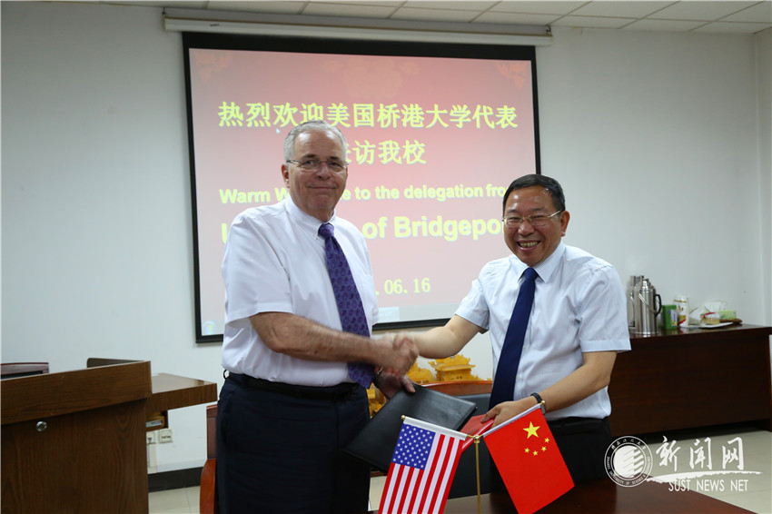 為加強我校與美國橋港大學合作開展科研項目,本科、碩士生短期交流,教師訪學,學術交流等工作,6月16日,我校與美國橋港大學在逸夫樓舉行合作備忘錄簽約儀式,校長姚書志與美國橋港大學校長尼爾· 薩洛寧簽訂《合作備忘錄》。黨委副書記楊欲曉主持簽約儀式。