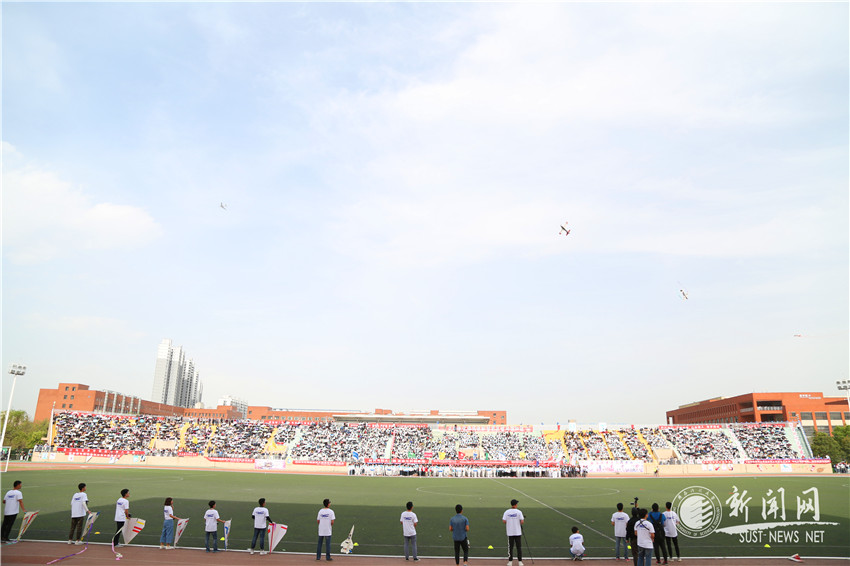 閉幕式還進行了大學生航模表演。數十架航模飛機在空中或直插云霄,或不斷翻滾跟斗……令人目不暇接,成為閉幕式上的一道靚麗的風景。在全場運動員及觀眾的歡呼吶喊和熱烈掌聲中,本屆運動會圓滿閉幕。