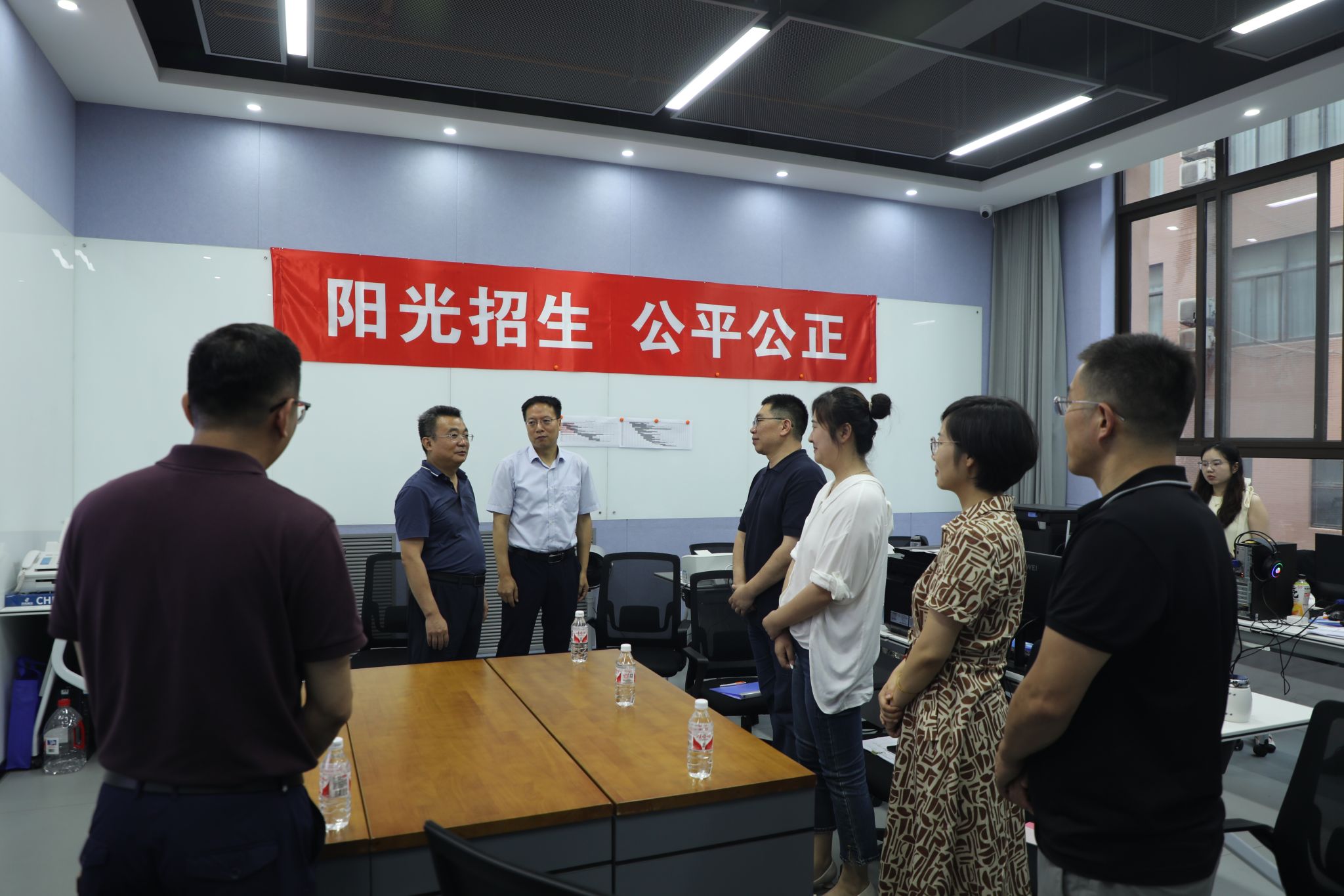 7月16日,樊建武、李志健來(lái)到位于鴻鵠廣場(chǎng)會(huì)議中心的我校招生錄取工作現(xiàn)場(chǎng),親切慰問(wèn)了奮戰(zhàn)在招生錄取一線的工作人員,認(rèn)真聽取了招辦負(fù)責(zé)人對(duì)招生錄取工作進(jìn)展情況的匯報(bào),詳細(xì)了解了招生計(jì)劃執(zhí)行、生源質(zhì)量、錄取流程等方面情況,對(duì)我校2024年本科招生錄取工作進(jìn)行現(xiàn)場(chǎng)指導(dǎo)。