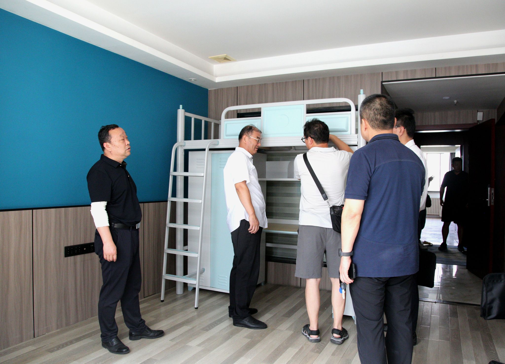 8月13日上午,校長李志健帶隊深入暑期學(xué)生公寓改造施工現(xiàn)場,檢查指導(dǎo)項目建設(shè)。校黨委副書記王道安、李學(xué)軍陪同檢查。