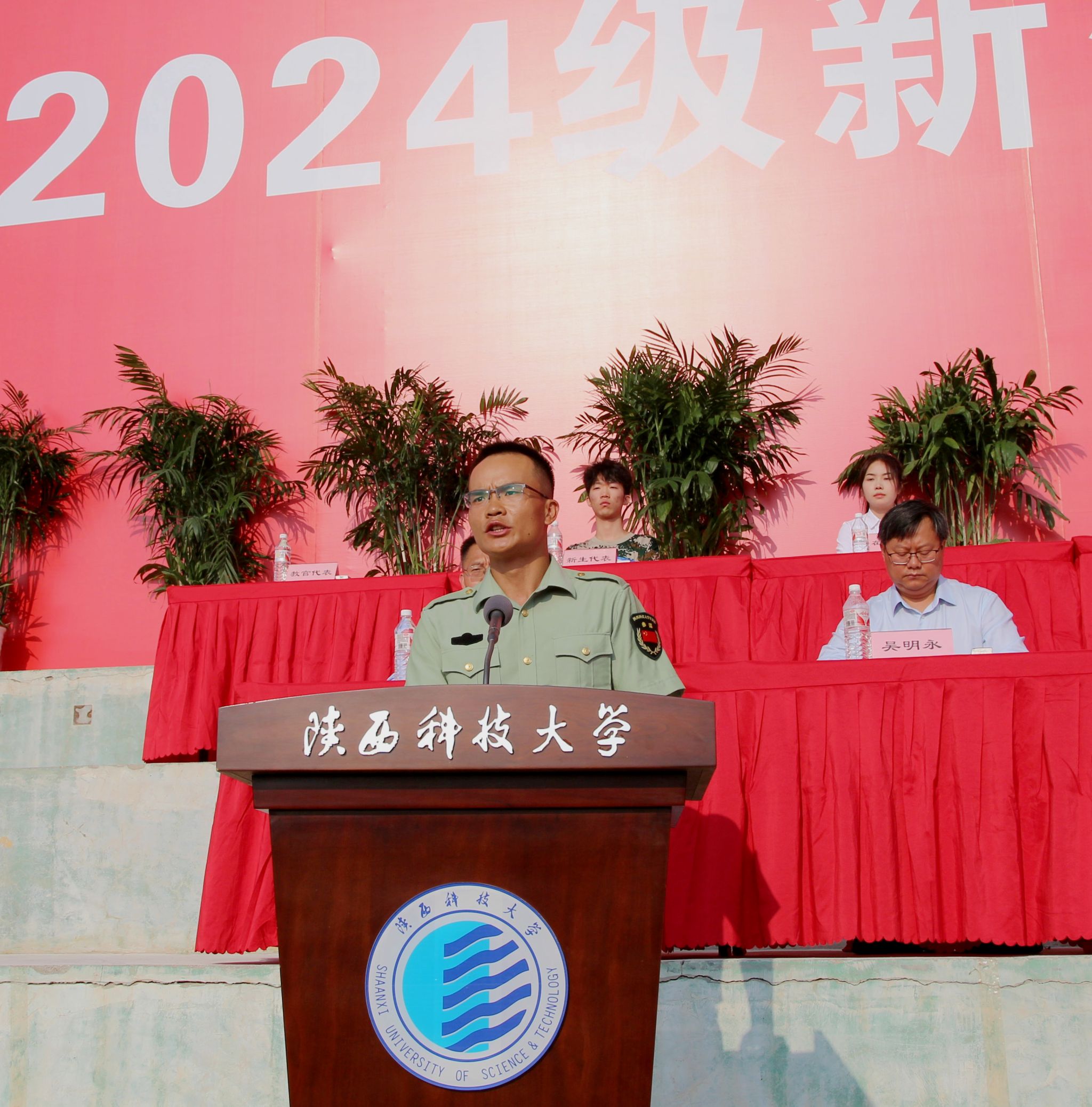 9月4日上午,我校2024級(jí)新生開(kāi)學(xué)典禮暨軍訓(xùn)動(dòng)員大會(huì)在標(biāo)準(zhǔn)田徑場(chǎng)舉行。校黨委書記樊建武,校長(zhǎng)李志健,校黨委副書記王道安,校黨委副書記、紀(jì)委書記、監(jiān)察專員羅瑩,校黨委副書記李學(xué)軍,副校長(zhǎng)黃劍鋒、蒲永平、費(fèi)貴強(qiáng)、黃海峙、陸趙情及各部門、各學(xué)院主要負(fù)責(zé)人、師生代表出席典禮。樊建武為2024年軍訓(xùn)團(tuán)頒授軍訓(xùn)團(tuán)團(tuán)旗,李志健發(fā)表講話。校黨委副書記郭強(qiáng)主持典禮。