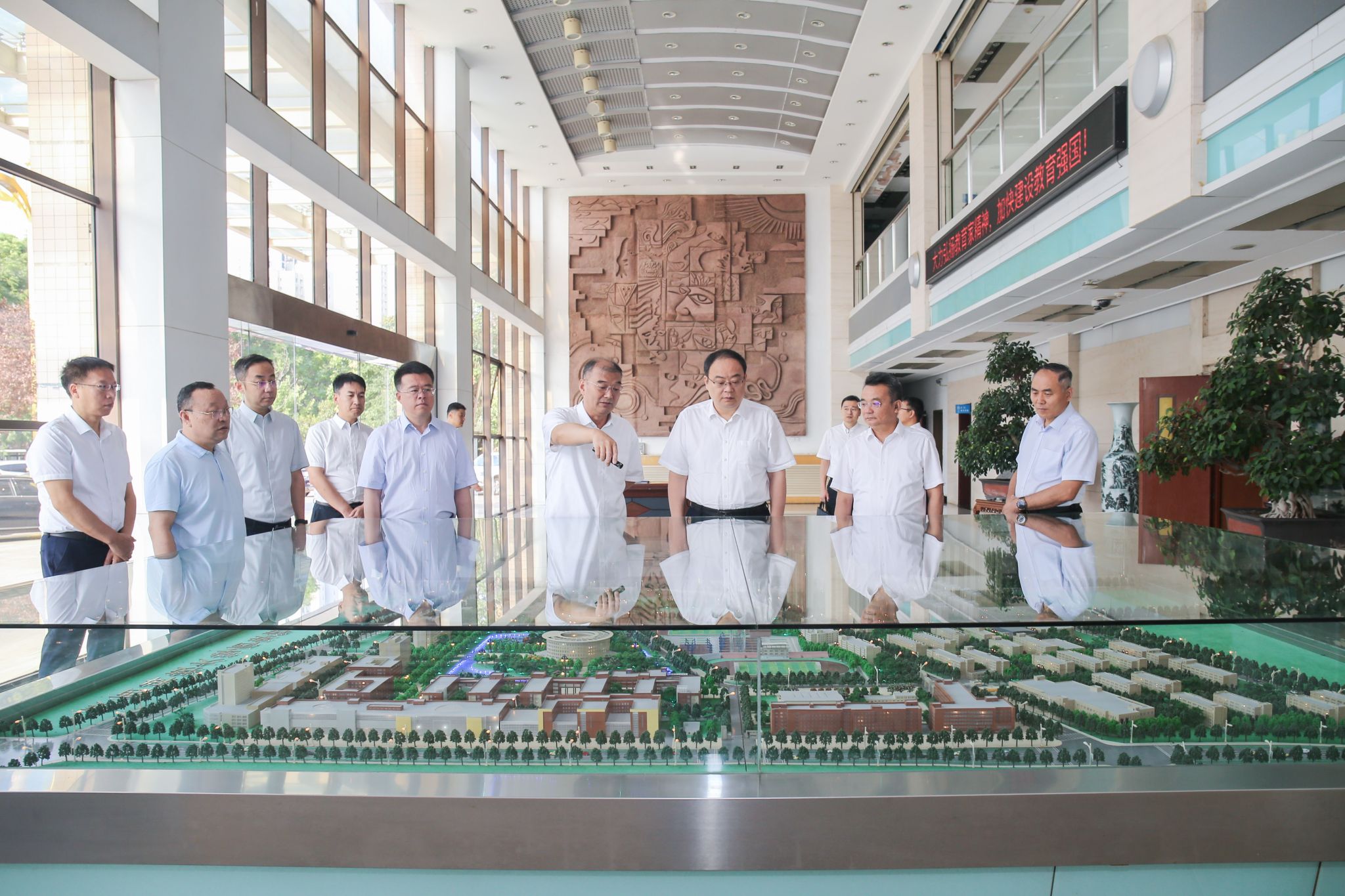 調研期間,王樹聲詳細詢問了學校開學各項工作情況,先后深入前沿科學與技術轉移研究院、網絡思想政治工作中心、中國輕工業(yè)博物館等單位進行實地查看,仔細了解了學校實驗室大型儀器設備的使用情況和辦學歷程、辦學特色。