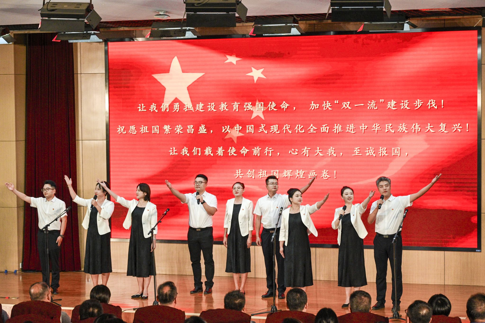 9月26日晚,由校工會主辦,宣傳部、校團委協(xié)辦的“奮楫揚帆新時代 凝心聚力向未來”慶祝中華人民共和國成立75周年教職工主題朗誦會在圖書館學術報告廳精彩上演。校長李志健,校黨委副書記王道安,校黨委副書記、紀委書記、監(jiān)察專員羅瑩,副校長黃海峙出席朗誦會。來自20個分會的教職工演員以多樣的表現(xiàn)形式深情朗誦,共同傾訴著對偉大祖國最深沉的愛。校黨委委員,學校各職能部門、各學院主要負責人,師生代表近五百人觀看了現(xiàn)場演出。