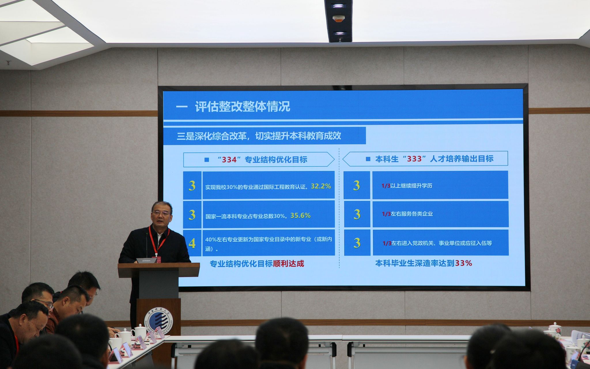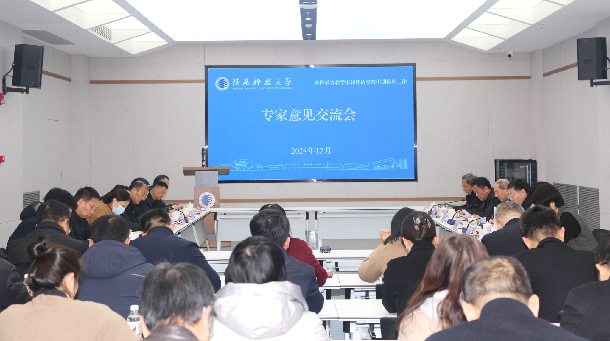 學校各職能部門、各學院(部)主要負責人參加審核評估整改中期檢查專家見面會和意見交流會。