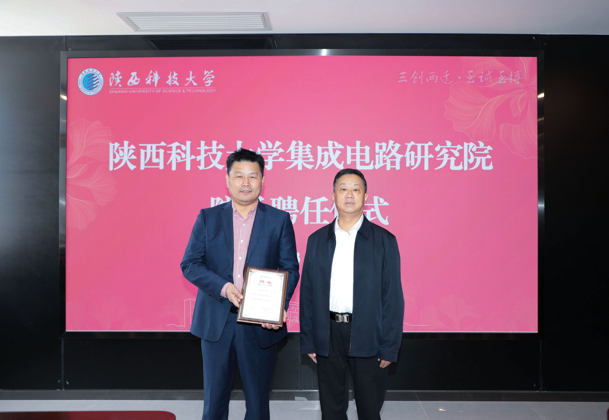 聘任儀式上,陸趙情介紹了韓興成教授的基本情況并宣讀了學(xué)校關(guān)于聘任韓興成為陜西科技大學(xué)集成電路研究院院長(zhǎng)的決定。