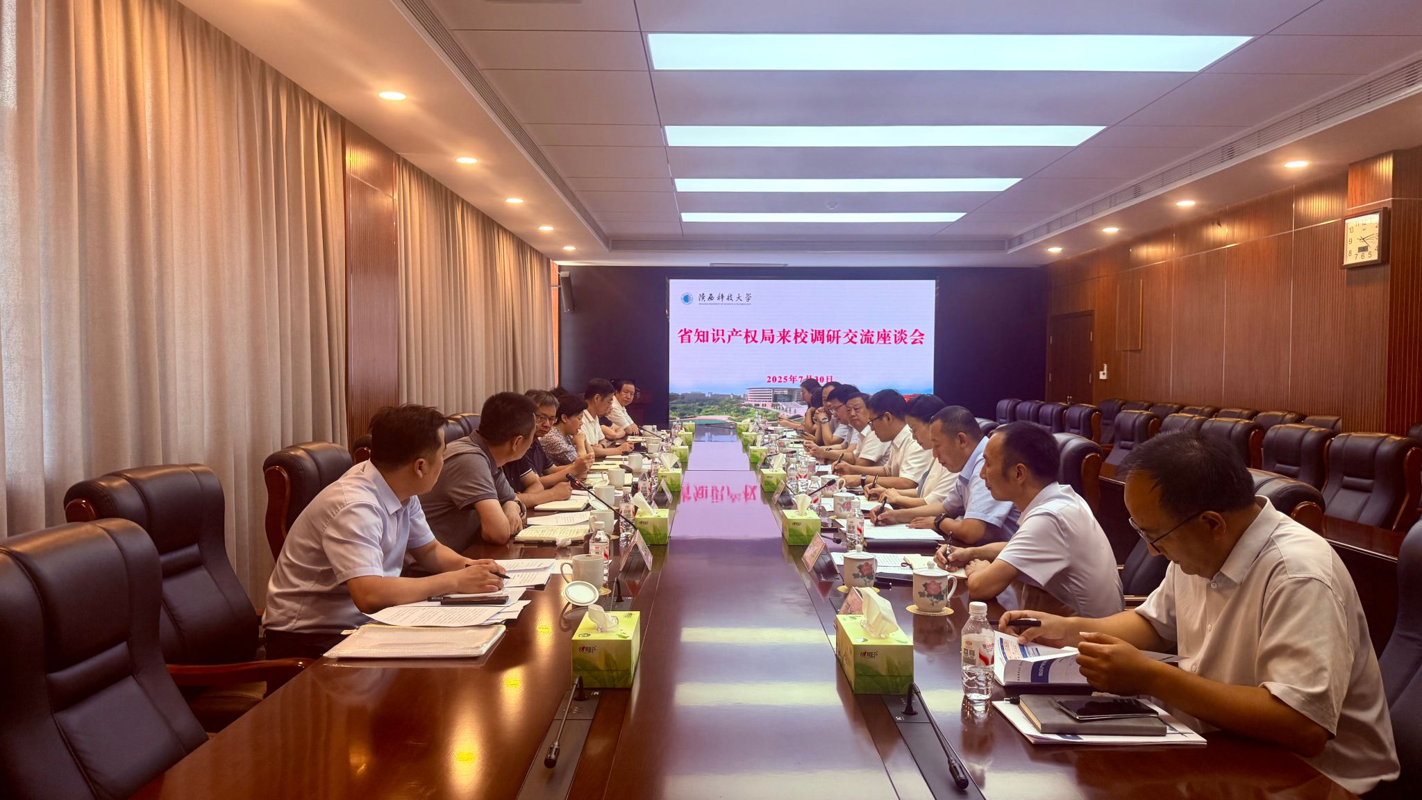 為貫徹落實(shí)省委、省政府工作部署,持續(xù)深化科技成果轉(zhuǎn)化“三項(xiàng)改革”及西部示范知識產(chǎn)權(quán)強(qiáng)省建設(shè),7月30日下午,陜西省知識產(chǎn)權(quán)局黨組書記、局長沈黎萍,副局長李迎波一行10人來陜西科技大學(xué)調(diào)研交流。校長黃劍鋒出席會議并講話,副校長陸趙情主持會議。