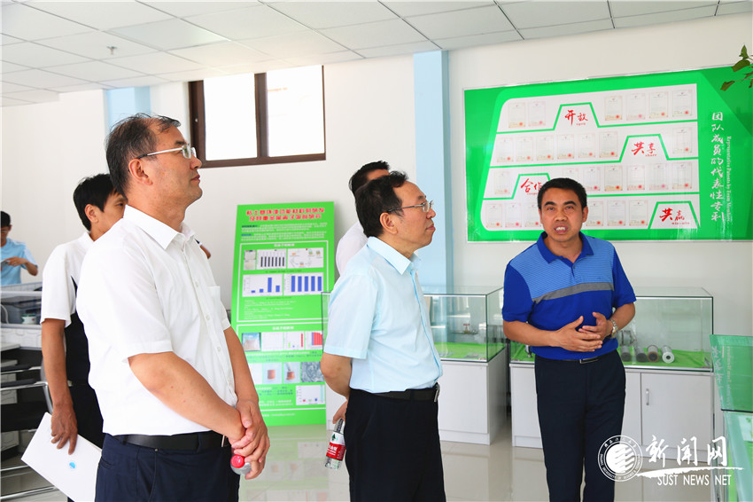姚書志和李育江為我校技術(shù)轉(zhuǎn)移中心和入駐團(tuán)隊(duì)陜西科技大學(xué)能源研究院揭牌并參觀了我校首批入駐團(tuán)隊(duì)的辦公場所。