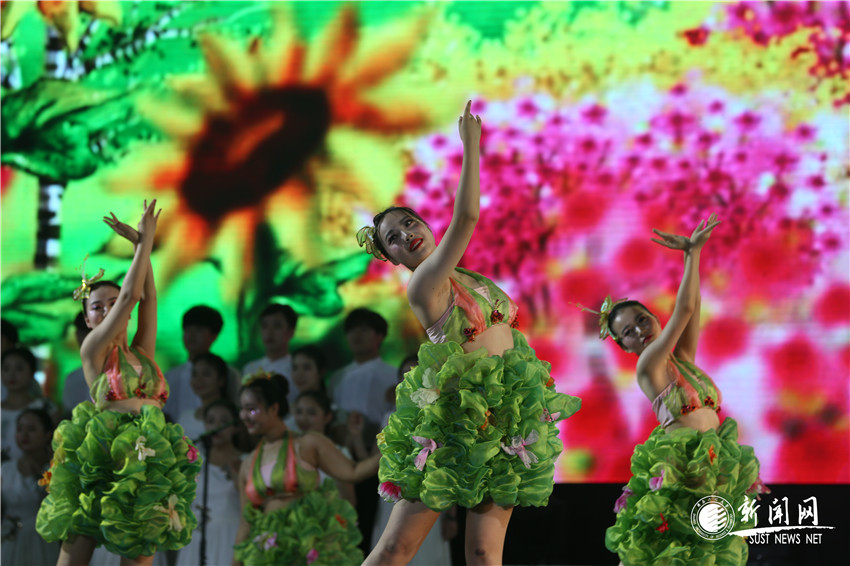 飛揚(yáng)的歌聲,吟唱難忘的歲月;熟悉的旋律,演繹時(shí)代的激情。掠過歲月的斑駁、歷經(jīng)風(fēng)雨的打磨,一代代科大人愈發(fā)神采奕奕。晚會(huì)第二篇章“鑄魂—不負(fù)韶華”在我校啦啦操隊(duì)活力四射的《cheer leading show》中開篇;由我校大學(xué)生社團(tuán)帶來(lái)的原創(chuàng)音樂快板《三創(chuàng)兩遷》,全面系統(tǒng)又富有藝術(shù)表現(xiàn)力的展現(xiàn)了我校從北京創(chuàng)辦、到大義西遷再到主體東移的歷史過往,從一張張泛黃的舊照片、斑駁的老視頻到現(xiàn)代化的美麗校園,陜科大的跨越式發(fā)展凝結(jié)了一代代科大人的無(wú)私奉獻(xiàn)與頑強(qiáng)拼搏。沒有老一輩的篳路藍(lán)縷,就沒有今天科大學(xué)子的迎風(fēng)綻放,舞蹈《綻放》將到場(chǎng)師生的熱情徹底點(diǎn)燃。