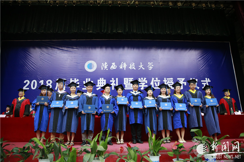 校黨委副書記溫鋒宣讀《陜西科技大學關(guān)于表彰2018屆優(yōu)秀畢業(yè)生、優(yōu)秀學生干部、優(yōu)秀學業(yè)獎學金獲得者的決定》:頒發(fā)給余天丹等93名同學“一等優(yōu)秀學業(yè)獎學金”;項華翠等243名同學“二等優(yōu)秀學業(yè)獎學金”;曹藝迪等633名同學“三等優(yōu)秀學業(yè)獎學金”;授予張家馳等284名同學“優(yōu)秀畢業(yè)生”稱號;授予錢維亮等77名同學“優(yōu)秀學生干部”稱號。