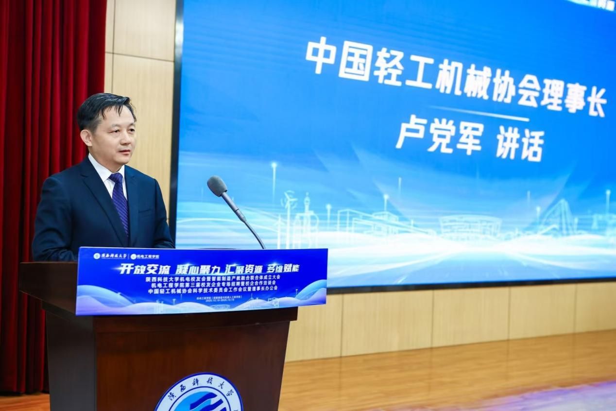 10月17日,陜西科技大學(xué)機電校友會暨智能制造產(chǎn)教融合創(chuàng)新聯(lián)合體成立大會在圖書館報告廳舉行。大會以“開放交流、凝心聚力、匯聚資源、多維賦能”為主題,旨在匯聚校友力量、深化產(chǎn)教融合,助力學(xué)?!按筝p工”學(xué)科體系建設(shè)與高質(zhì)量發(fā)展。校長黃劍鋒,副校長馬力,中國輕工業(yè)聯(lián)合會黨委副書記、76級機械專業(yè)校友王世成,中國輕工機械協(xié)會理事長盧黨軍,西北輕工業(yè)學(xué)院原副院長尚久浩參會。機電工程學(xué)院院長楊立軍主持會議。