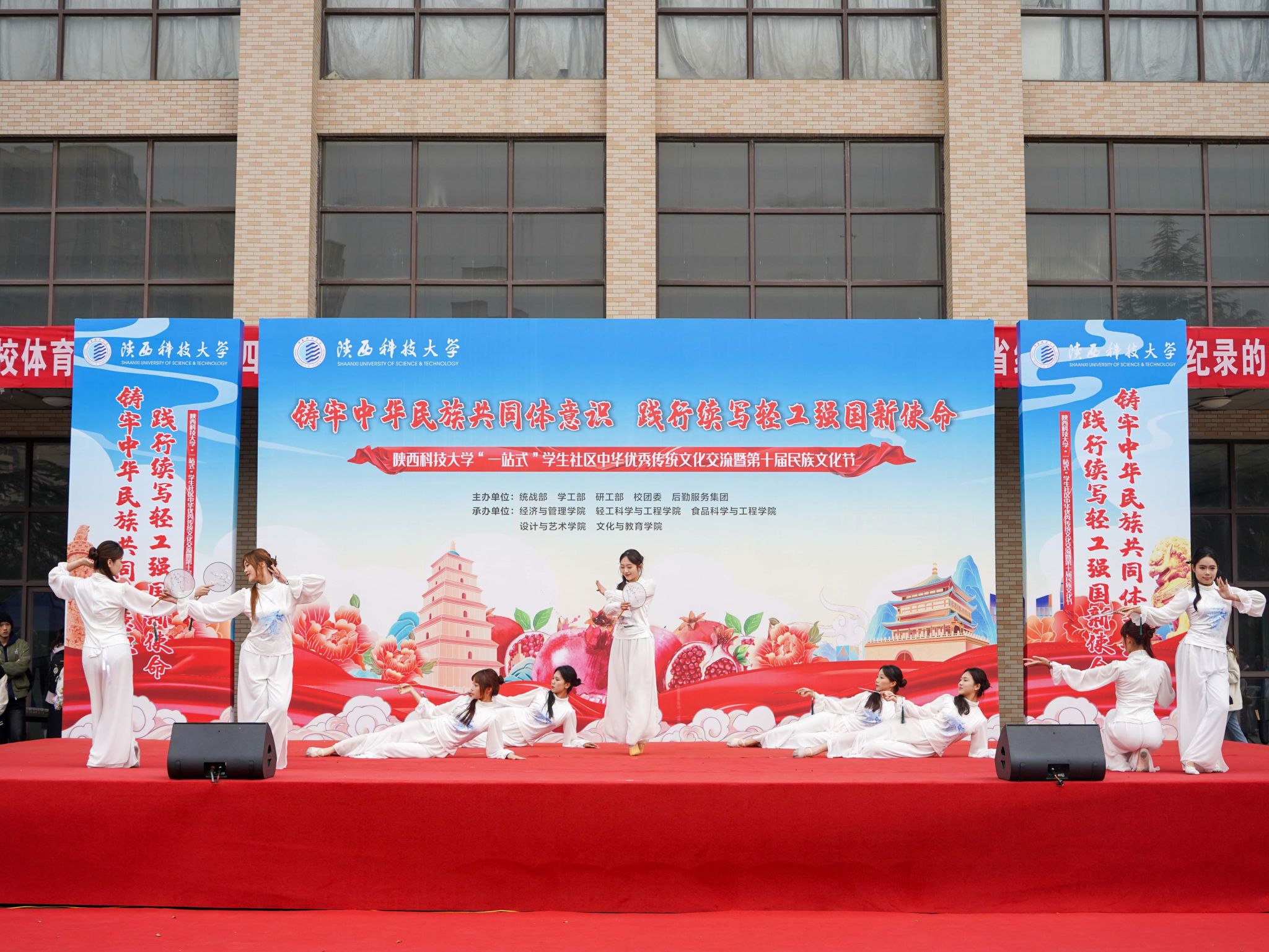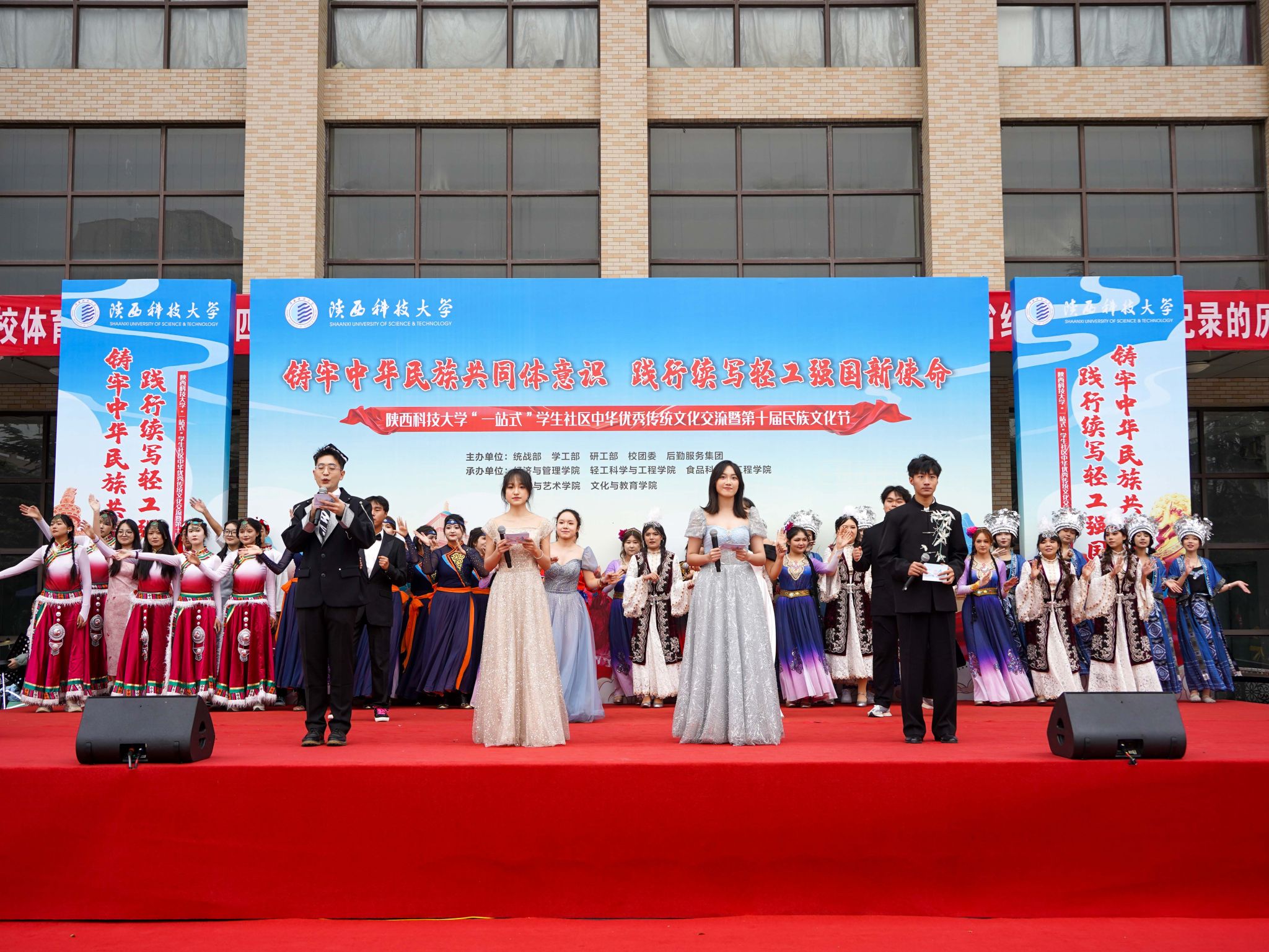 為深入學(xué)習(xí)貫徹習(xí)近平總書記關(guān)于加強和改進民族工作的重要思想,11月10日,陜西科技大學(xué)“一站式”學(xué)生社區(qū)中華優(yōu)秀傳統(tǒng)文化交流暨第十屆民族文化節(jié)順利舉行。黨委書記樊建武,黨委副書記王道安、李學(xué)軍,副校長黃海峙及相關(guān)部門負責(zé)人與各民族師生齊聚一堂,共同參與此次文化盛會。