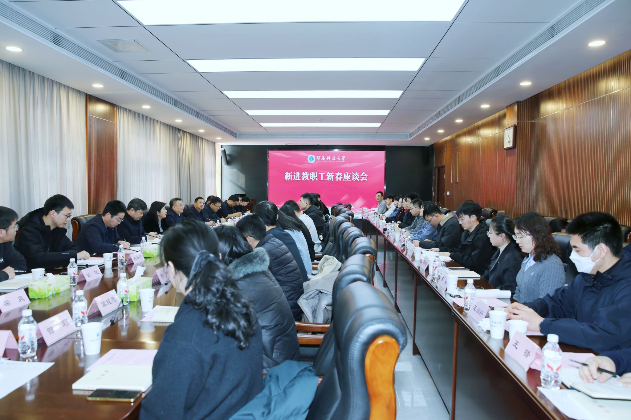 1月23日,陜西科技大學(xué)召開新進(jìn)教職工新春座談會(huì),聽取新進(jìn)教職工對學(xué)?!笆逦濉币?guī)劃編制、2026年重點(diǎn)工作安排及領(lǐng)導(dǎo)班子作風(fēng)建設(shè)等方面的意見建議,廣泛凝聚發(fā)展共識與合力。黨委書記樊建武、校長黃劍鋒出席座談會(huì)并講話,副校長馬力主持會(huì)議。