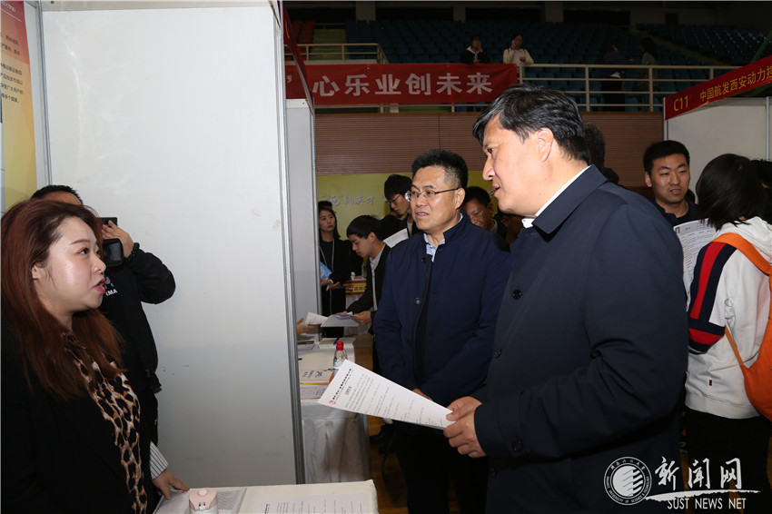 陜西省教育廳廳長(zhǎng)王建利,副廳長(zhǎng)王紫貴,省委教育工委學(xué)工部部長(zhǎng)、省教育廳學(xué)生處處長(zhǎng)唐澍,省教育廳學(xué)生處副處級(jí)調(diào)研員白煬及市人社局相關(guān)領(lǐng)導(dǎo),我校校長(zhǎng)馬建中、黨委副書記溫鋒、學(xué)生就業(yè)指導(dǎo)中心負(fù)責(zé)人到招聘會(huì)現(xiàn)場(chǎng)了解情況,并與用人單位代表、畢業(yè)生交流就業(yè)情況,聽取他們的意見建議。