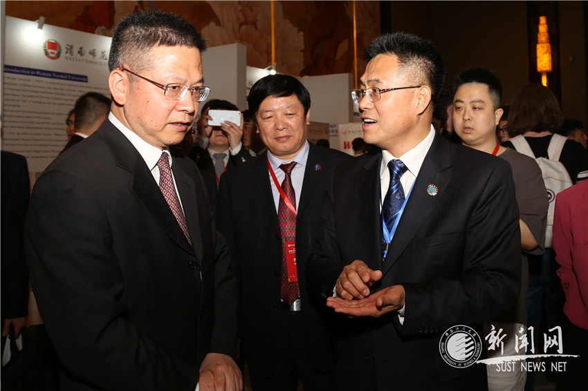 馬建中、王海燕與我校留學(xué)生在絲博會學(xué)校展臺親切交流