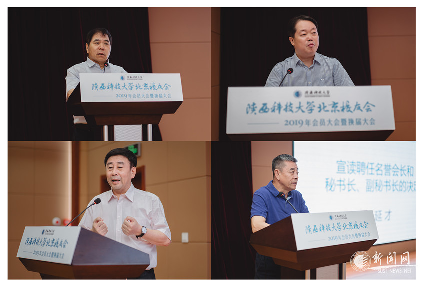 李學(xué)軍宣讀陜西科技大學(xué)校友總會批復(fù)。大會選舉產(chǎn)生了新一屆校友會會長、副會長成員:楊承杰(皮78)當(dāng)選會長,王延才(機(jī)77)、李玉中(皮85)、劉曉華(機(jī)74)、李建國(紙80)當(dāng)選副會長,張振華(食品02)當(dāng)選秘書長,王勇(食品87)、王寧寧(電信06)當(dāng)選副秘書長。在會上,王世成(機(jī)76)、陳鄂生(紙77)、陳元魁(陶80)、周國祥(皮87)、王根保(皮84)被聘為名譽(yù)會長。