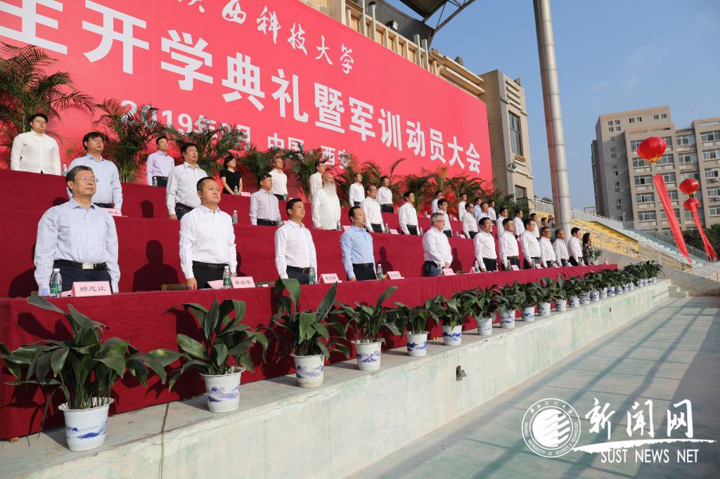 九月的陜科大,天高云淡、秋風(fēng)送爽。我校2019級新生開學(xué)典禮暨軍訓(xùn)動員大會在田徑運動場舉行。校黨委書記姚書志,校長馬建中,校黨委副書記楊欲曉、王道安,校紀(jì)委書記王為民,副校長黃劍鋒、王海燕、李學(xué)軍,總會計師徐曉峰,校長助理鄭恩讓,嘉賓阿爾斯特大學(xué)校長派迪·尼克松、澳大利亞教育管理集團(tuán)總裁李新慶,各學(xué)院及有關(guān)職能部門負(fù)責(zé)人、教師代表和學(xué)生代表齊聚一堂,見證5730名學(xué)子成為“新陜科大人”的光榮一刻。大會由校黨委副書記溫鋒主持。