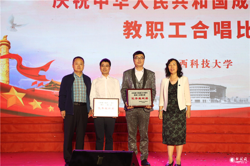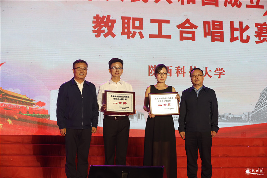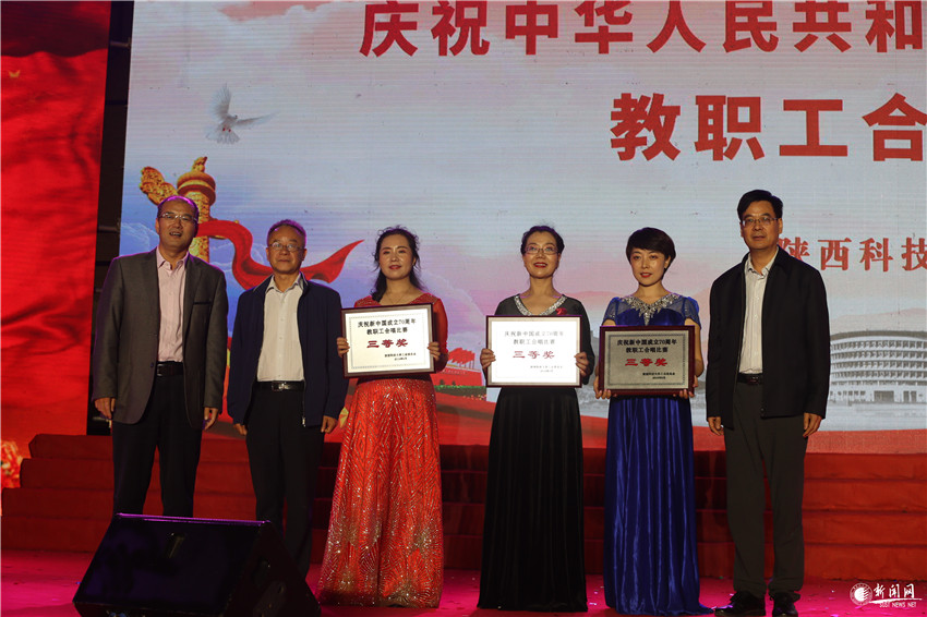 9月27日晚7時(shí)30分,陜西科技大學(xué)慶祝新中國(guó)成立70周年教職工合唱比賽在西安校區(qū)標(biāo)準(zhǔn)田徑場(chǎng)舉行。來(lái)自學(xué)校工會(huì)委員會(huì)17個(gè)分會(huì)的合唱隊(duì),代表全校教職員工,用歌聲為偉大祖國(guó)獻(xiàn)上心中最美的祝愿。校黨委書記姚書志,校黨委副書記楊欲曉、王道安,紀(jì)委書記王為民,副校長(zhǎng)王學(xué)川、李志健、李學(xué)軍,總會(huì)計(jì)師徐曉峰,校長(zhǎng)助理鄭恩讓與師生代表齊聚一堂,觀看了精彩的演出,并向獲得比賽一二三等獎(jiǎng)和優(yōu)秀組織獎(jiǎng)的分會(huì)頒發(fā)獎(jiǎng)牌。