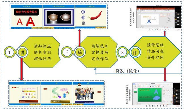 我的這門課屬于專業(yè)課,課程特點(diǎn)在于理論和實踐的結(jié)合,要求學(xué)生既要掌握基本知識,也要掌握相應(yīng)的技術(shù)技能。所以我采用“講-練-評”三結(jié)合的基本思路開展教學(xué)?!爸v”就是解析關(guān)鍵知識點(diǎn),分析典型案例,演示基本技術(shù)操作,使得學(xué)生對所學(xué)知識點(diǎn)和基本技能有所掌握;“練”就是要讓學(xué)生把掌握的知識點(diǎn)內(nèi)化,變成自己的技能,練習(xí)制作作品,在模擬老師演示作品的基礎(chǔ)上實現(xiàn)自己的創(chuàng)新,做出屬于自己原創(chuàng)性的作品;“評”就是對學(xué)生的作品要有評價過程,要有對比過程,指出學(xué)生作品中存在的問題,并提出具體解決辦法,指導(dǎo)學(xué)生解決問題,優(yōu)化作品。
