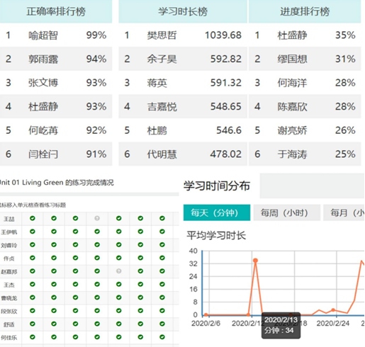 課后反饋及各類相關拓展性活動是保證線上教學質量的重要手段,《大學英語》教改團隊當前使用的多類型智慧教學平臺均具有多終端匹配的教學管理系統(tǒng),可以為我們提供全方位的數(shù)據(jù)服務。