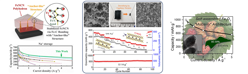 黃劍鋒教授領(lǐng)銜的“無(wú)機(jī)材料綠色制造與功能化應(yīng)用團(tuán)隊(duì)”在鐵碳二亞胺高性能鈉離子電池負(fù)極材料和致密1T-MoS2/石墨烯鉀離子電池負(fù)極材料研究方面取得重要進(jìn)展,兩項(xiàng)成果均發(fā)表于材料領(lǐng)域國(guó)際頂級(jí)期刊Advanced Functional Materials;關(guān)于量子點(diǎn)自組裝桑葚狀Fe2O3鋰離子電池負(fù)極材料和三維層狀自支撐多功能電催化劑兩項(xiàng)成果發(fā)表于國(guó)際知名期刊Chemical Engineering Journal;關(guān)于合成高活性S22-鍵密集Ni3S2/VS4納米棒陣列電催化劑研究成果發(fā)表于國(guó)際知名期刊Nanoscale。