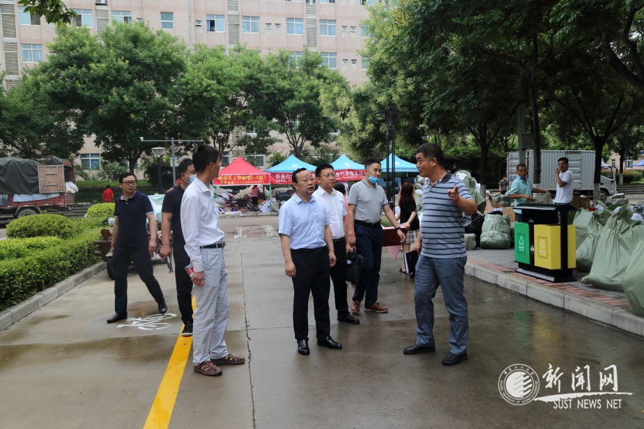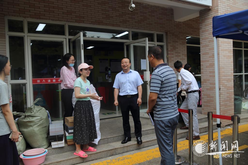 王道安先后走訪了學生行李郵寄點、物品回收點、學生公寓、快遞服務中心等地,聽取了學工部關于公寓整體概況、疫情防控期間學生健康上報、學生返校系統以及畢業(yè)生離校情況等方面的工作匯報。
