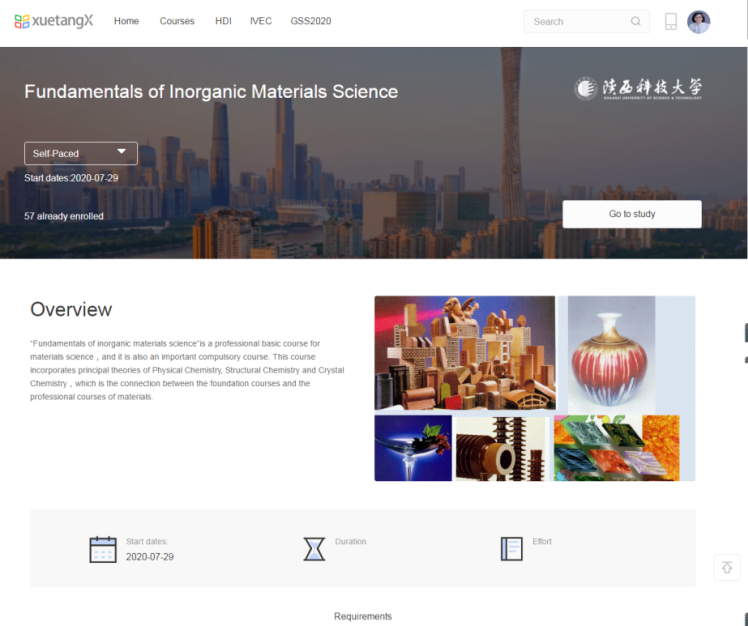 我校材料科學與工程學院林營、趙婷、劉虎林、李永和方媛等幾位老師主講的課程《Fundamentals of Inorganic Materials Science》(無機材料科學基礎)于2020年暑假期間在“學堂在線”國際平臺上線,向全球學習者免費開放。這是我校上線的第一門全英文慕課。