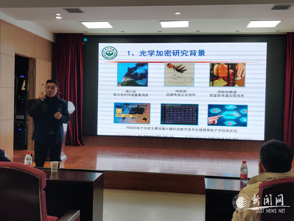余丁山教授就能量轉(zhuǎn)化與儲存及信息加密儲存兩方面對課題組近年來取得的研究進展進行詳細匯報,重點闡述如何從載體材料及器件結(jié)構(gòu)設(shè)計出發(fā)實現(xiàn)光信息安全的過程。期間,兩位講授與參會師生就如何將加密技術(shù)應(yīng)用于皮革防偽及如何構(gòu)建加密儲存材料等問題與進行了深入的交流。