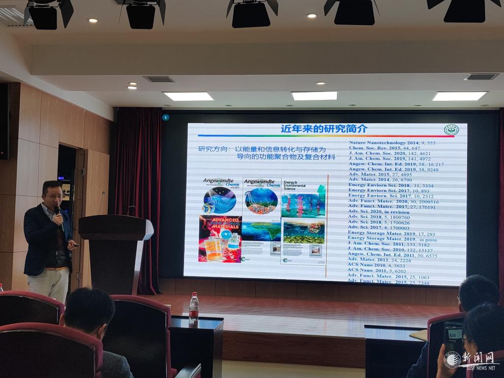 10月31日,中山大學(xué)化學(xué)學(xué)院陳旭東教授與余丁山教授,華南理工大學(xué)材料科學(xué)與工程學(xué)院教授、博士生導(dǎo)師趙俊鵬教授應(yīng)科技處及輕工科學(xué)與工程學(xué)院邀請,作客我?!扒把乜茖W(xué)報告”,并先后進行了題為“光學(xué)加密聚合物材料結(jié)構(gòu)與性能”、“能量和信息轉(zhuǎn)化與存儲功能聚合物及復(fù)合材料”和“有機小分子催化的陰離子開環(huán)聚合”的學(xué)術(shù)報告。報告分別由輕工學(xué)院副院長呂斌教授和學(xué)術(shù)帶頭人徐永建教授主持,學(xué)院相關(guān)專業(yè)教師和研究生、本科生參加了報告會。