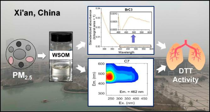 “Oxidative potential of water-soluble matter associated with chromophoric substances in PM2.5over Xi'an, China (西安地區(qū)PM2.5中與發(fā)色團物質(zhì)相關(guān)的水溶性物質(zhì)的氧化潛能)”以有機化合物是大氣氣溶膠氧化潛能的重要貢獻者為背景,首次報道了中國西安市PM2.5中與發(fā)色團物質(zhì)有關(guān)的水溶性有機物的氧化潛能。本團隊定量分析了水溶性PM2.5中的二硫蘇糖醇(DTT)活性水平,以及DTT活性與光吸收和熒光性質(zhì)之間的關(guān)系。結(jié)果表明,DTT活性與有色水溶性有機物顯著相關(guān),其中我們確定了三種吸光物質(zhì)(BrC1-3)和八種熒光物質(zhì)(C1-8)。進一步研究發(fā)現(xiàn),BrC3和C7幾乎占據(jù)了有色水溶性有機物的所有DTT活性,且分別因其長吸收波長和熒光發(fā)射波長而與其他發(fā)色物質(zhì)有明顯區(qū)別。這一發(fā)現(xiàn)將有助于更好地解釋和理解吸光有機氣溶膠產(chǎn)生氧化活性的機理,并為通過光學(xué)特性來預(yù)測吸光有機氣溶膠氧化潛能的方法提供指導(dǎo)。全文鏈接:https://doi.org/10.1021/acs.est.9b01976
