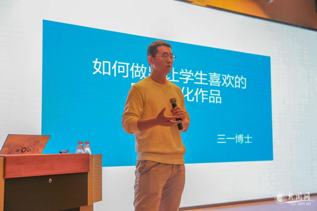 薛恒瀟以《如何做出讓學(xué)生喜歡的網(wǎng)絡(luò)文化作品》為題,分別從當(dāng)代大學(xué)生心理現(xiàn)狀分析、高校網(wǎng)絡(luò)思政的困惑和傳播學(xué)視角三個方面對培訓(xùn)內(nèi)容進行了解讀。培訓(xùn)會開始,薛恒瀟首先分析了當(dāng)代大學(xué)生的心理現(xiàn)狀,以當(dāng)前大學(xué)生喜聞樂見的網(wǎng)絡(luò)平臺B站、抖音為例,向現(xiàn)場師生介紹當(dāng)代年輕人喜歡的多類平臺及其傳播特點。其次,他通過分析短視頻平臺與大學(xué)生的密切聯(lián)系,闡釋了重視短視頻制作的重要性與必要性。在創(chuàng)作上,他認(rèn)為,只有讓受眾覺得“與我有關(guān)”,創(chuàng)作出的內(nèi)容才能獲得更好的反響。再次,就如何創(chuàng)作出“與大眾有關(guān)的”內(nèi)容,薛恒瀟也做了相應(yīng)講授。他還強調(diào),網(wǎng)絡(luò)文化想要深入到大學(xué)生群體,離不開傳播規(guī)律,在網(wǎng)絡(luò)平臺的傳播中內(nèi)容和形式也要接地氣。在互動環(huán)節(jié),在場師生踴躍發(fā)問,薛恒瀟對如何將學(xué)生喜歡的亞文化和網(wǎng)絡(luò)思政相結(jié)合等所提問題進行了一一詳答。