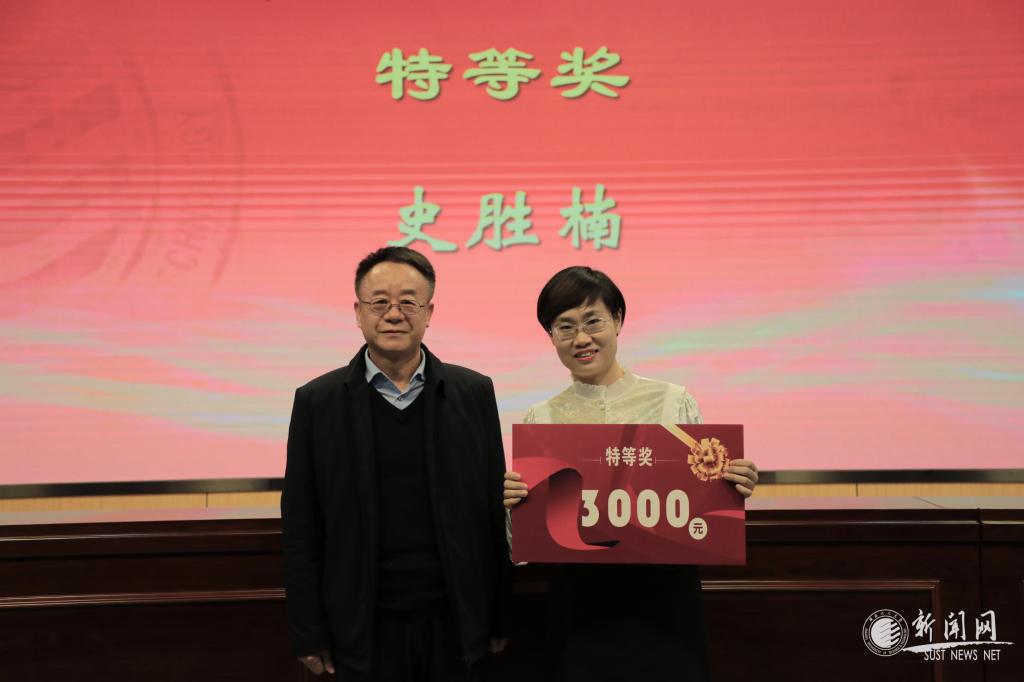 蒲永平宣讀了《陜西科技大學(xué)關(guān)于史勝楠同志專業(yè)技術(shù)職務(wù)任職資格的通知》,直接認(rèn)定特等獎(jiǎng)獲得者史勝楠具有副教授任職資格。
