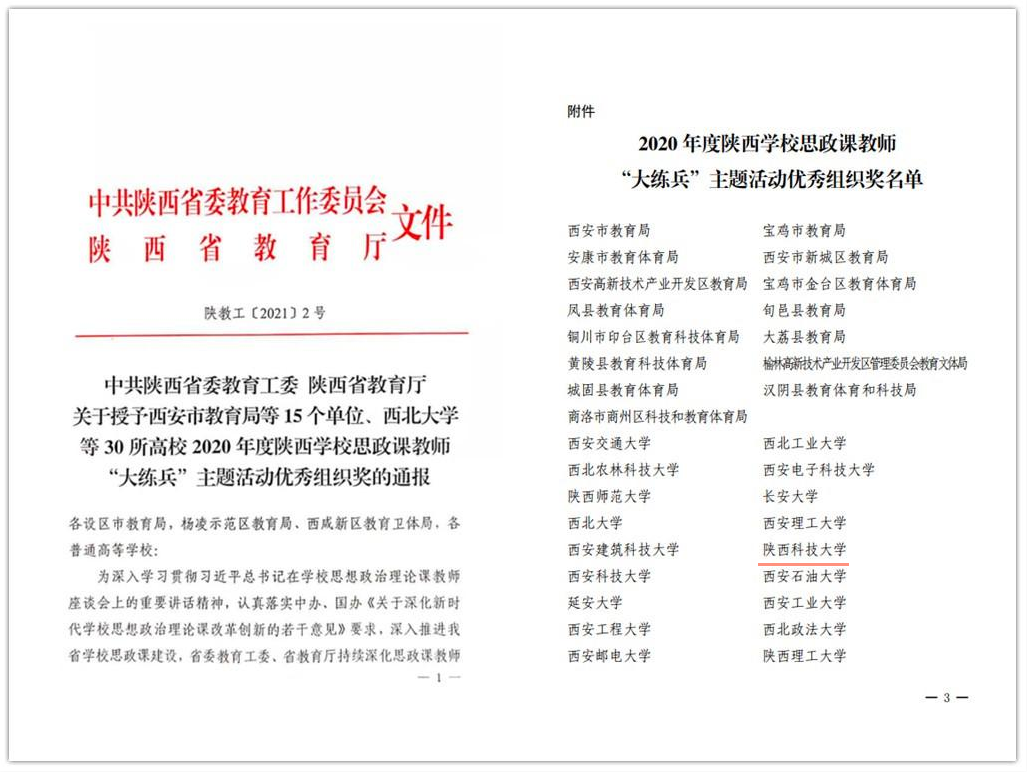 1月5日,全省學(xué)校思政課改革創(chuàng)新推進(jìn)會(huì)暨“大練兵”主題活動(dòng)表彰會(huì)召開。會(huì)議表彰了2020年全省學(xué)校思政課教師“大練兵”主題活動(dòng)獲獎(jiǎng)教師和優(yōu)秀組織單位。我校被中共陜西省委教育工委、陜西省教育廳授予2020年度陜西學(xué)校思政課教師“大練兵”主題活動(dòng)優(yōu)秀組織獎(jiǎng)。校黨委書記姚書志作為優(yōu)秀組織獎(jiǎng)獲獎(jiǎng)高校代表應(yīng)邀參會(huì)。