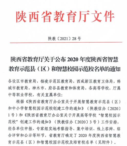 3月3日,陜西省教育廳發(fā)文公布了2020年度智慧校園示范校和培育校名單,我校獲批為2020年陜西省高等學(xué)?!爸腔坌@培育校”。該項工作首次在高校開展,旨在打造智慧校園建設(shè)標(biāo)準(zhǔn)高、智能化應(yīng)用效果好、信息化推動教育現(xiàn)代化場景特色鮮明的示范性高校,引領(lǐng)我省高校邁入智慧教育新階段。