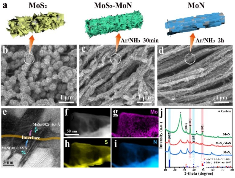 在異質(zhì)結(jié)構(gòu)協(xié)同抑制多硫化物的穿梭,提高鋰硫電池性能方面取得了重要研究進(jìn)展,發(fā)表題為“Insight into MoS2-MoN Heterostructure to Accelerate Polysulfide Conversion toward High-Energy-Density Lithium-Sulfur Batteries”的研究論文。第一作者為我校王思哲副教授,聯(lián)合通訊作者為宋浩杰和加拿大西安大略大學(xué)孫學(xué)良院士,文章以陜西科技大學(xué)為第一單位發(fā)表在國際頂級期刊Advanced Energy Materials上。