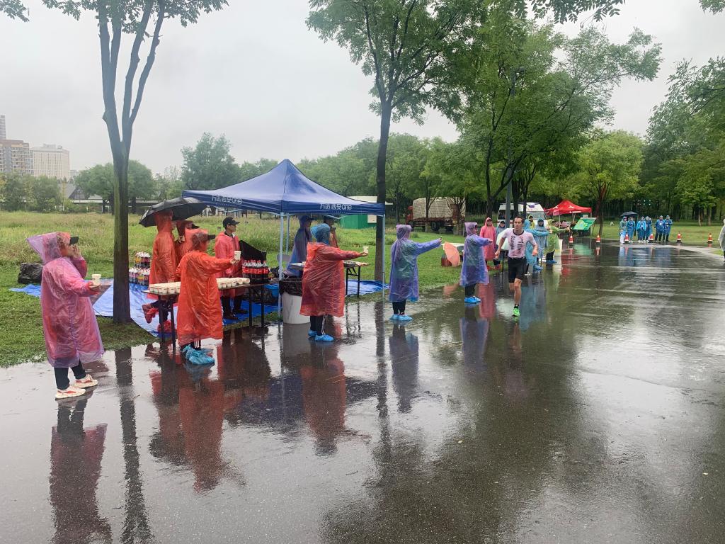 初秋,雨夜,凌晨3:30,正當同學們沉醉夢鄉(xiāng)時,學校門口卻一片繁忙:397名身批紅藍綠各種顏色雨衣的學生志愿者在路燈的照射下格外耀眼,宛如一群“夜精靈”安靜地排隊等待,依次有序登上大巴,風馳電掣地奔赴2019年國際鐵人三項世界錦標賽賽場。