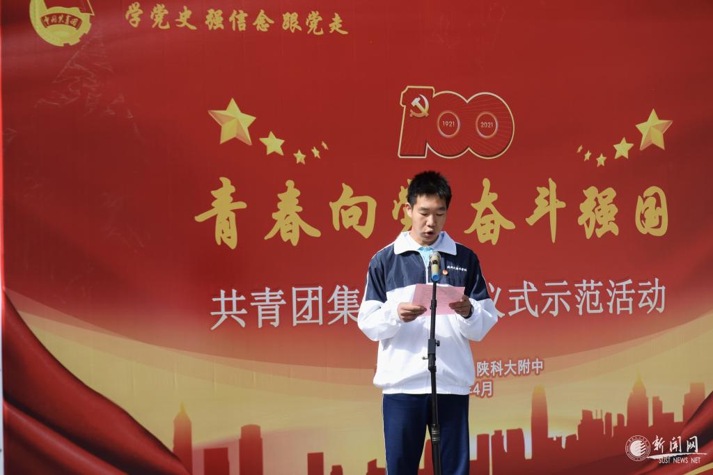 為慶祝中國共產(chǎn)黨成立100周年,紀(jì)念五四運(yùn)動(dòng)102周年,深入貫徹落實(shí)共青團(tuán)中央關(guān)于“學(xué)黨史、強(qiáng)信念、跟黨走”學(xué)習(xí)教育的要求,值此五四青年節(jié)來臨之際,校團(tuán)委與離退處、陜科大附中于4月29日上午在陜西科技大學(xué)咸陽老校區(qū)銀杏林聯(lián)合開展“青春向黨·奮斗強(qiáng)國”五四集中入團(tuán)儀式暨紀(jì)念五四運(yùn)動(dòng)102周年表彰活動(dòng)。學(xué)校全體共青團(tuán)干部、2021年優(yōu)秀團(tuán)員學(xué)生標(biāo)兵、離退處及附中團(tuán)委工作人員、我校部分老教授、老干部、老黨員以及附中新入團(tuán)青年團(tuán)員代表參與了此次活動(dòng)。