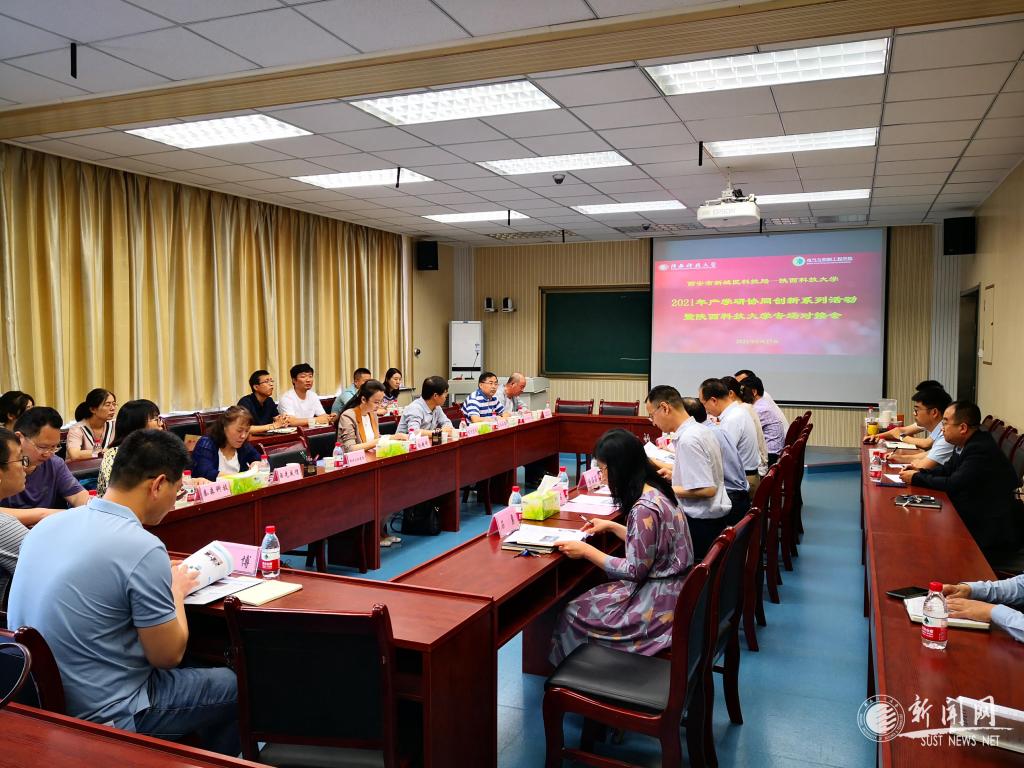 5月27日上午,西安市新城區(qū)科技局局長趙超妍攜西北工業(yè)集團有限公司等8家新城區(qū)企業(yè)來我校調(diào)研交流,并開展“西安市新城區(qū)科技局——陜西科技大學2021年產(chǎn)學研協(xié)同創(chuàng)新系列活動暨陜西科技大學專場對接會”活動。副校長黃劍鋒出席會議,前沿院、電控學院負責人及相關(guān)科研團隊參加了對接會,會議由電控學院院長湯偉主持。