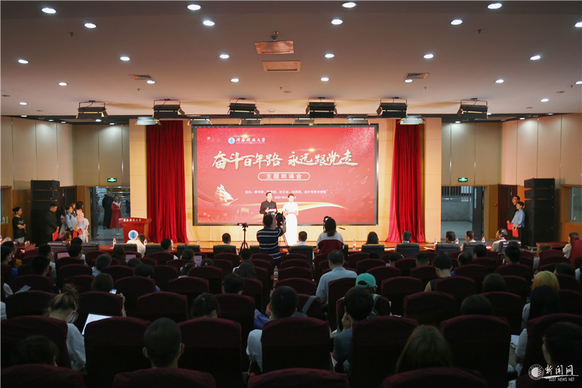 5月31日,由圖書館、檔案館、校工會(huì)、校團(tuán)委、設(shè)計(jì)與藝術(shù)學(xué)院聯(lián)合舉辦的“奮斗百年路 永遠(yuǎn)跟黨走”主題朗誦會(huì)在圖書館學(xué)術(shù)報(bào)告廳舉辦,校黨委副書記楊欲曉、王道安,校黨委副書記、紀(jì)委書記、監(jiān)察專員王為民,副校長(zhǎng)李學(xué)軍,總會(huì)計(jì)師徐曉峰出席了朗誦會(huì)。朗誦會(huì)由圖書館、檔案館策劃,設(shè)計(jì)與藝術(shù)學(xué)院教師賀嶺導(dǎo)演,師生共400余人參加了朗誦會(huì)。