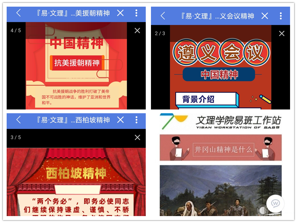 文理學(xué)院“五個一”用好網(wǎng)絡(luò)陣地,上好黨史必修課。文理學(xué)院在黨史學(xué)習(xí)教育中,統(tǒng)籌用好“網(wǎng)絡(luò)陣地”,通過建立“一知、一學(xué)、一講、一實踐、一傳承”的“五個一”工作思路,打造“紅色易班”,將網(wǎng)絡(luò)思政與黨史學(xué)習(xí)教育有機(jī)融合,推動黨史學(xué)習(xí)教育走深走實。通過建立“百年黨史100個第一”推文專欄,制作H5短視頻和圖文海報,以講黨史、說故事的形式,提升大學(xué)生學(xué)習(xí)興趣和熱情。建立“學(xué)黨史,知黨情,爭先鋒”的易班主題快搭,通過紅色書目閱讀會、讀書交流分享會、“誰是臥底”黨史競猜三個部分,引導(dǎo)大學(xué)生全面介紹學(xué)習(xí)黨史相關(guān)知識,將集體學(xué)習(xí)與個人學(xué)習(xí)相結(jié)合,將理論學(xué)習(xí)與思想交流相融合,將深邃內(nèi)涵與趣味載體相統(tǒng)一,極大豐富了青年學(xué)習(xí)黨史的載體與形式,有效提升黨史學(xué)習(xí)教育的感染性和實效性。