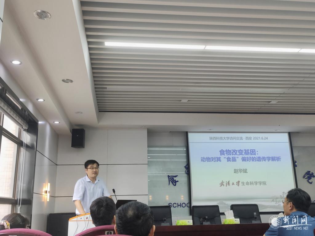 6月24日下午,武漢大學(xué)生命科學(xué)學(xué)院趙華斌教授應(yīng)邀做客我校前沿科學(xué)報(bào)告,以“食物改變基因:動(dòng)物對(duì)其‘食品’偏好的遺傳學(xué)解析”為題進(jìn)行學(xué)術(shù)報(bào)告,食品與生物工程學(xué)院教師和研究生代表參加了本次報(bào)告會(huì),報(bào)告會(huì)由食品學(xué)院副院長(zhǎng)李國(guó)梁教授主持。