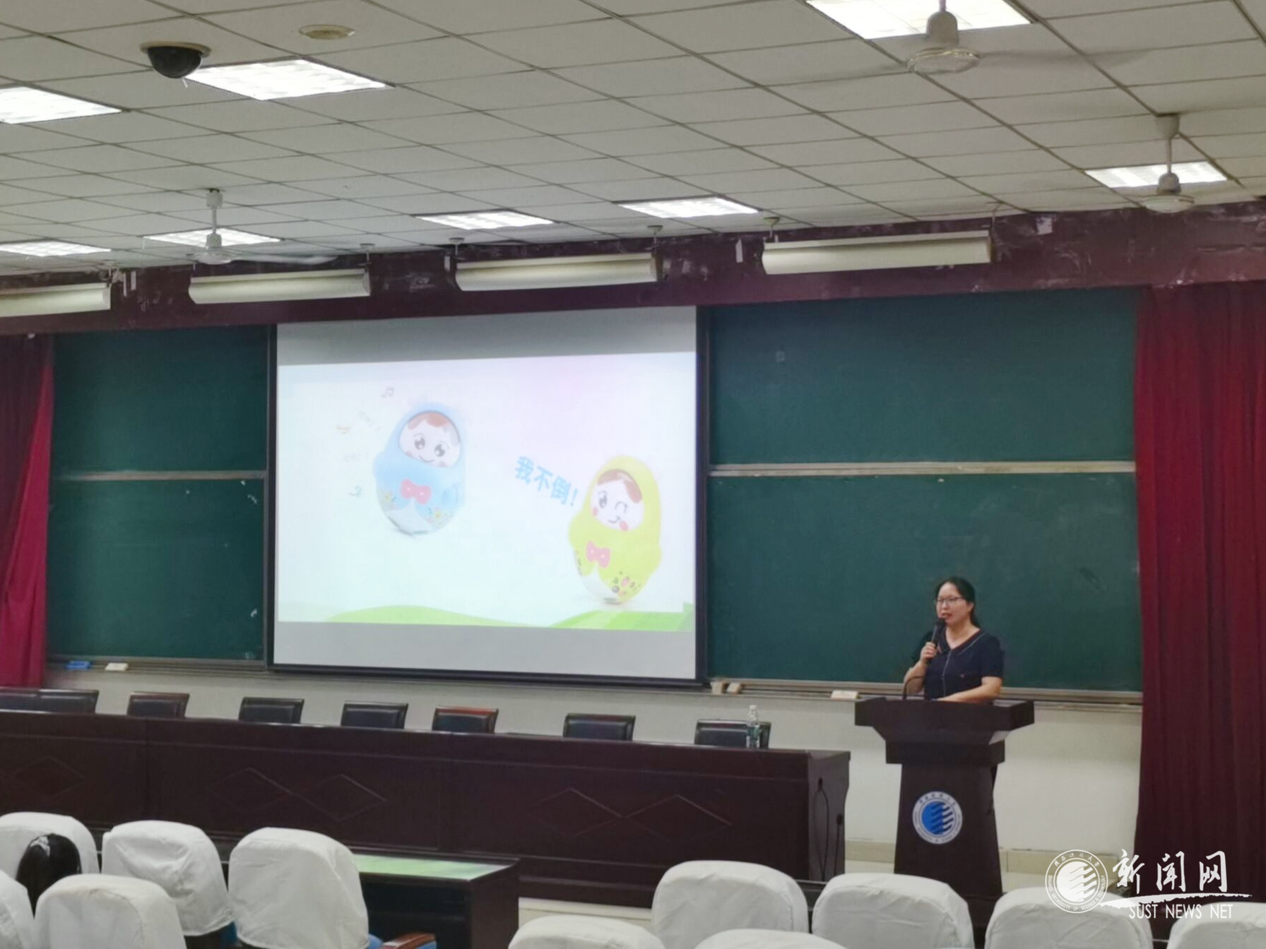 心理中心董雪副教授以“從‘不倒翁’看心理彈性”為題,結(jié)合自身成長故事與經(jīng)典心理學(xué)實驗,分析了積極心理素養(yǎng)在個體發(fā)展中的重要作用。董雪向?qū)W生們詳細解讀了面對壓力和逆境,個體的不同心理反應(yīng),用“不倒翁”形象傳達了逆境中強大的心理彈性,樹立“每個人是自己心理健康第一責(zé)任人”理念,積極成長,完善自我。