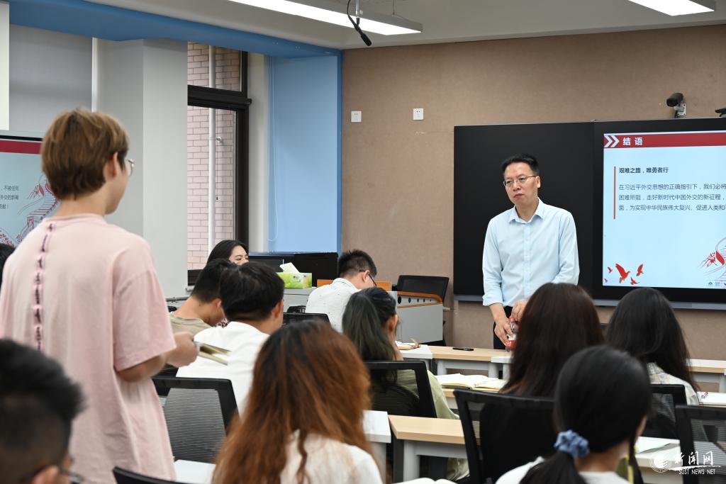 蒲永平從中國外交的歷史性成就、中國外交的優(yōu)良傳統(tǒng)和鮮明特色、開創(chuàng)新時代中國特色外交新局面三個方面,結(jié)合中國與世界發(fā)展大勢、中國特色與國際比較、中國擔當和國際責任,向同學們介紹了中國外交歷史、中國外交政策和中國外交中取得的巨大成就。